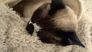 私は寝る時にエアコンがついて肌が乾燥するのが嫌で、寝室にはつけていません。猫部屋は24時間エアコン。で、君はなぜここで寝ているんだね?#猫にエアコン #深夜の猫 #猫の寝場所#猫のいる暮らし