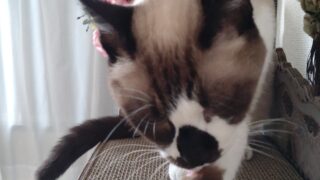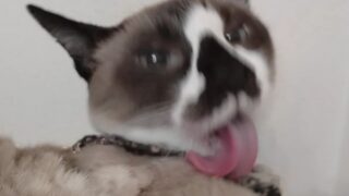 猫の舌は、割と長い。#猫の舌 #毛繕い #寝る前の儀式 #猫のいる暮らし #猫好きさんと繋がりたい