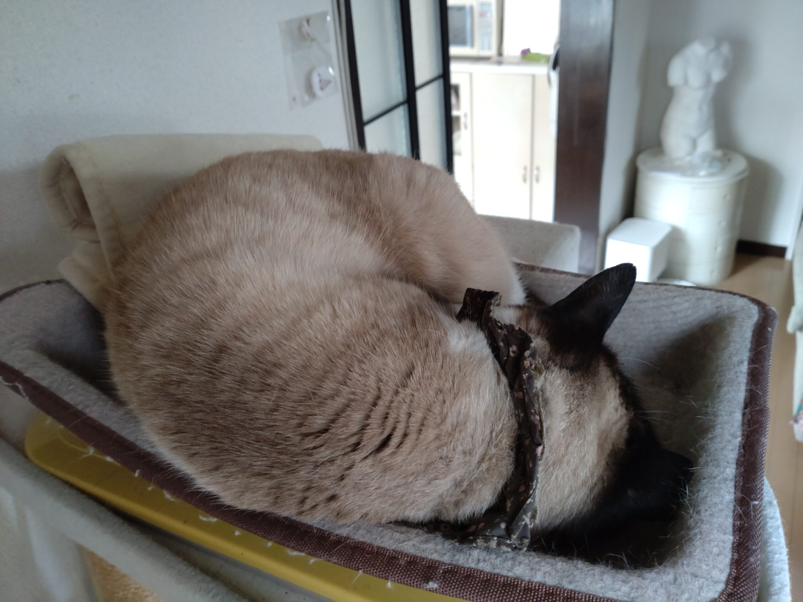 あなた落ちそうですよ 猫な話 2025.01.28 キャットタワーの上にホットマットと猫器を置いているんだけれど、何故か器の上にせり上っていくクセがある。 数年前に観た、落ちそうで落ちない猫まとめ動画また見たくなってきた。
