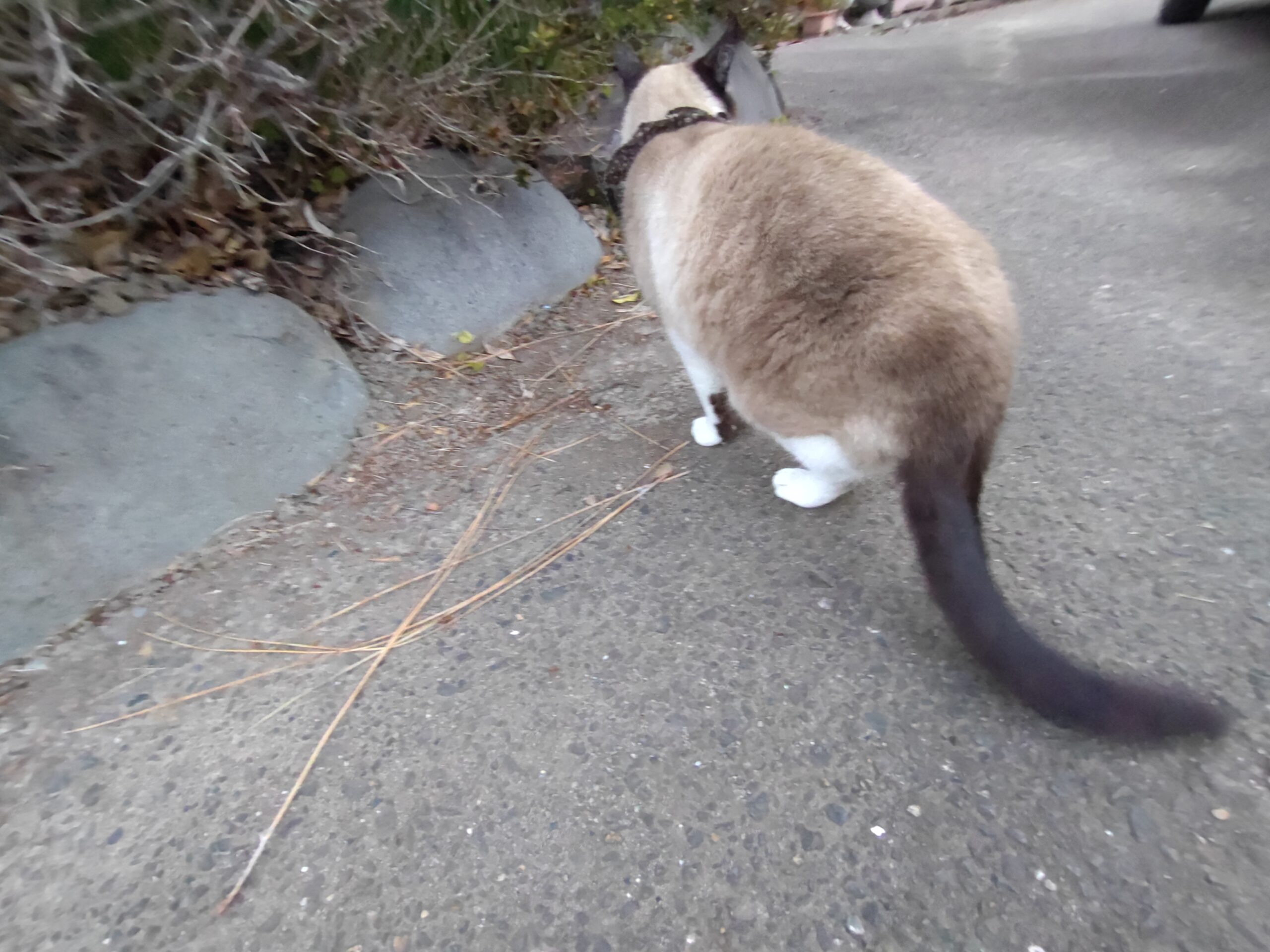 しっぽ低空ぶんぶん定位置 猫な話 2025.01.29 庭の中で何ヶ所かしっぽ下げてぶんぶんさせ不機嫌を表す場所があります。 猫もけっこう喜怒哀楽をしっぽや目つき耳つき等で表してくれます。遊びモードの歩きかあとかも。 こういう観察をしているだけでも楽しい生き物ですね。
