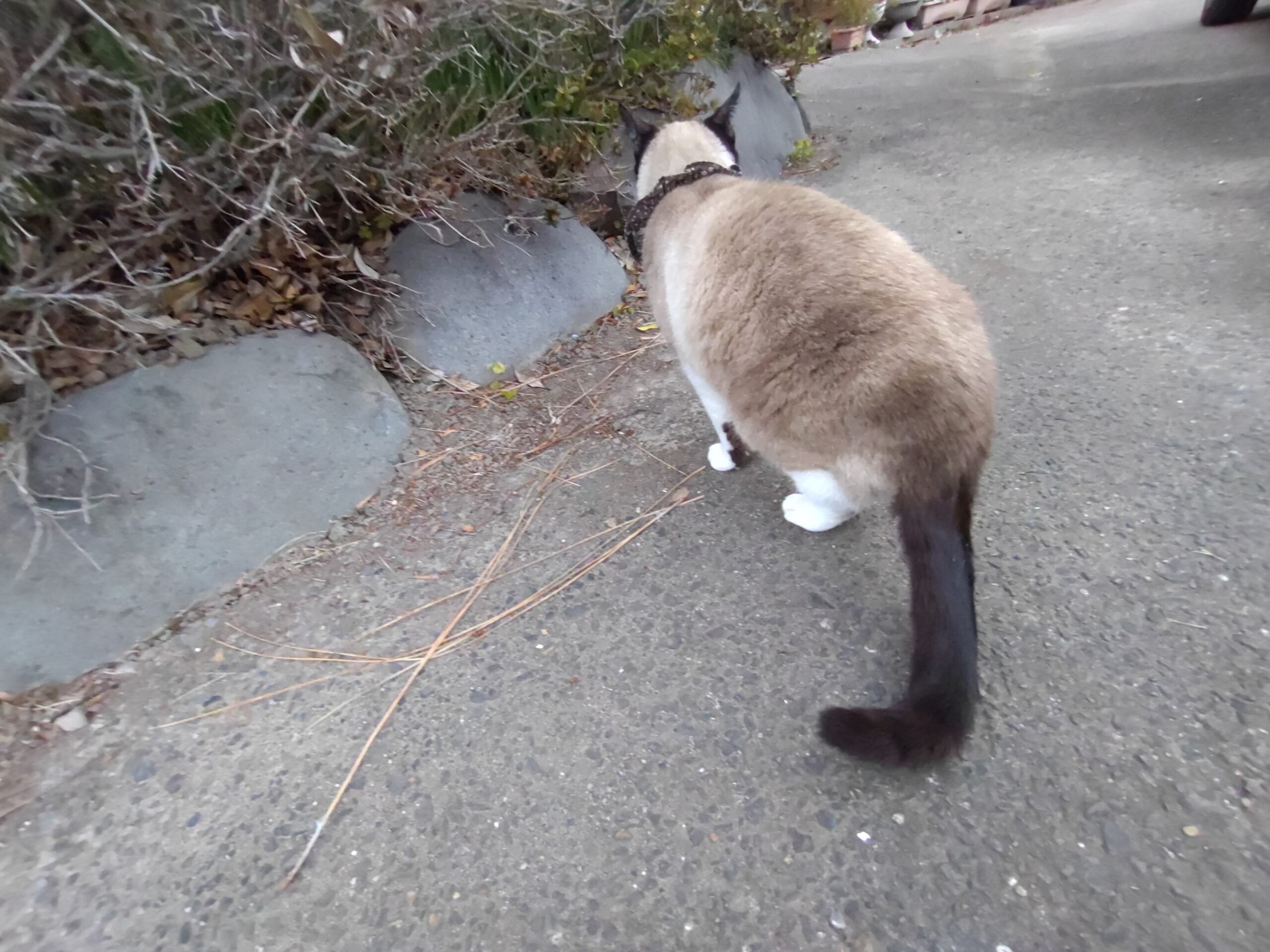 庭の中で何ヶ所かしっぽ下げてぶんぶんさせ不機嫌を表す場所があります。