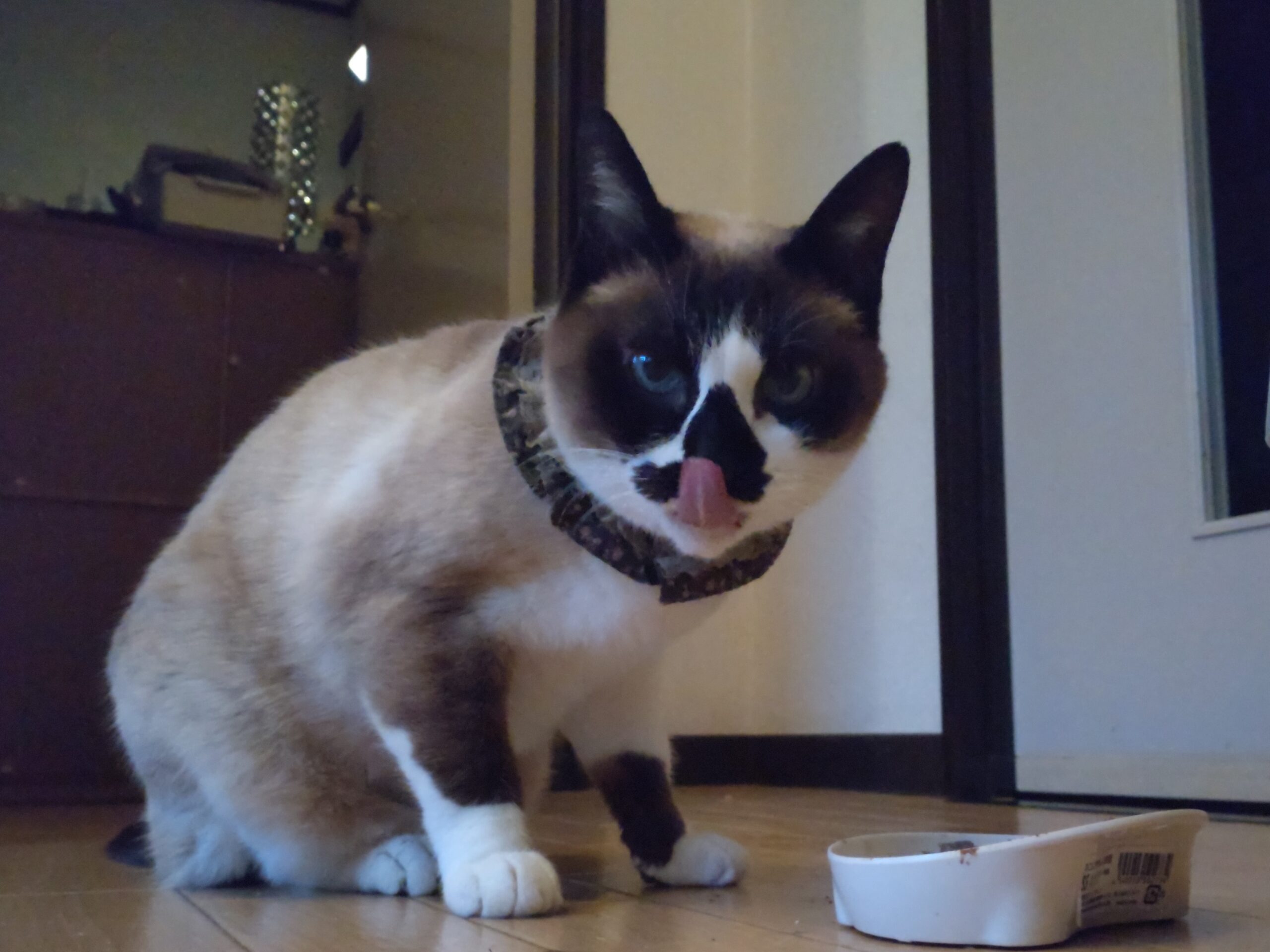 この顔である 猫な話 2025.02.07 妹からのササミとホタテの美味しい物ギフト。 あっという間に食べ終わってしまった。 ササミとホタテはそれぞれどんな形状になったものでも大好物。 私も好きだよ。ササミとホタテ。