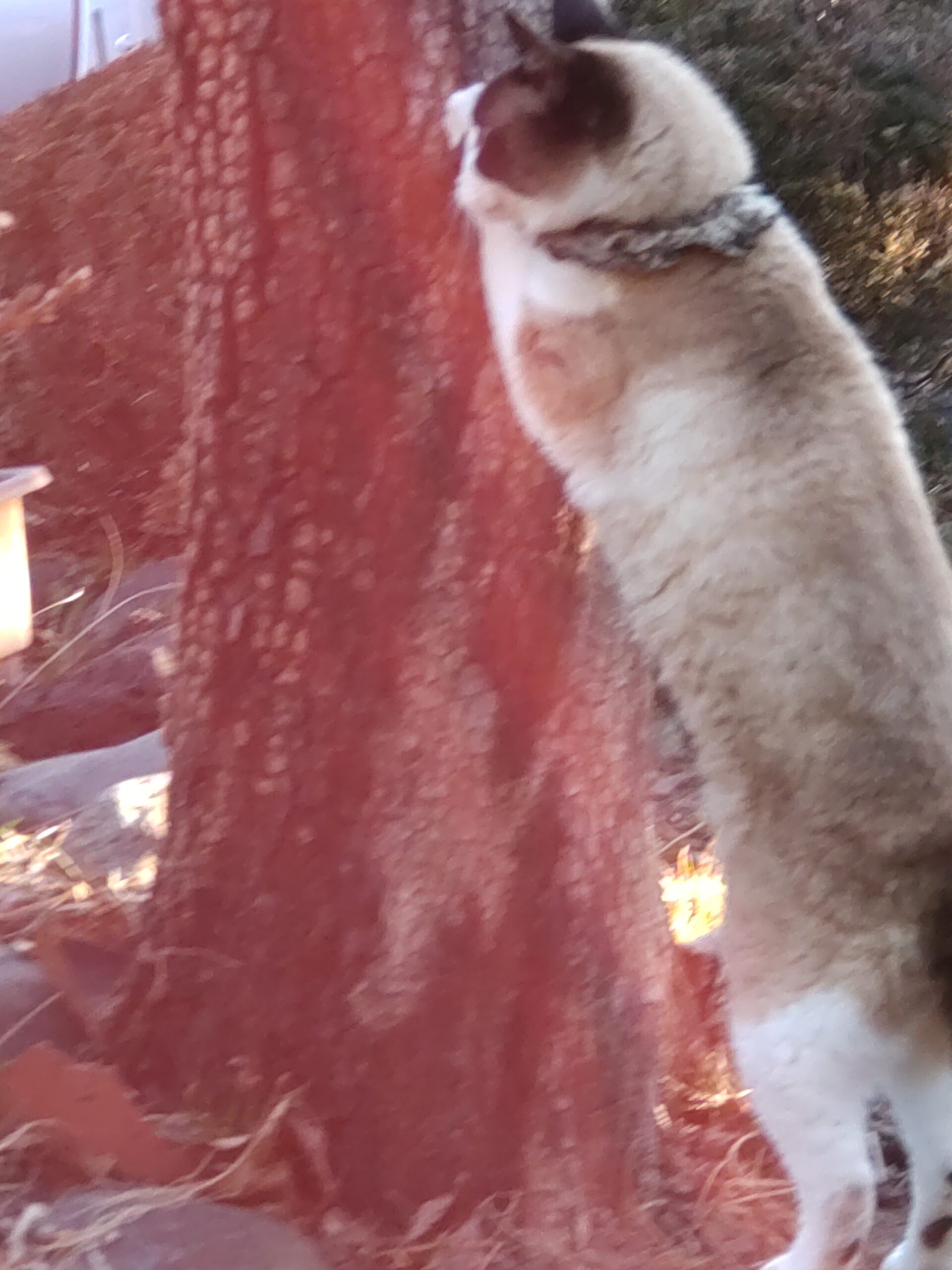 前も書いたことがある爪研ぎ柿の木だけど、いつものスマホに撮ったら、なぜか木が赤く写ってしまった。