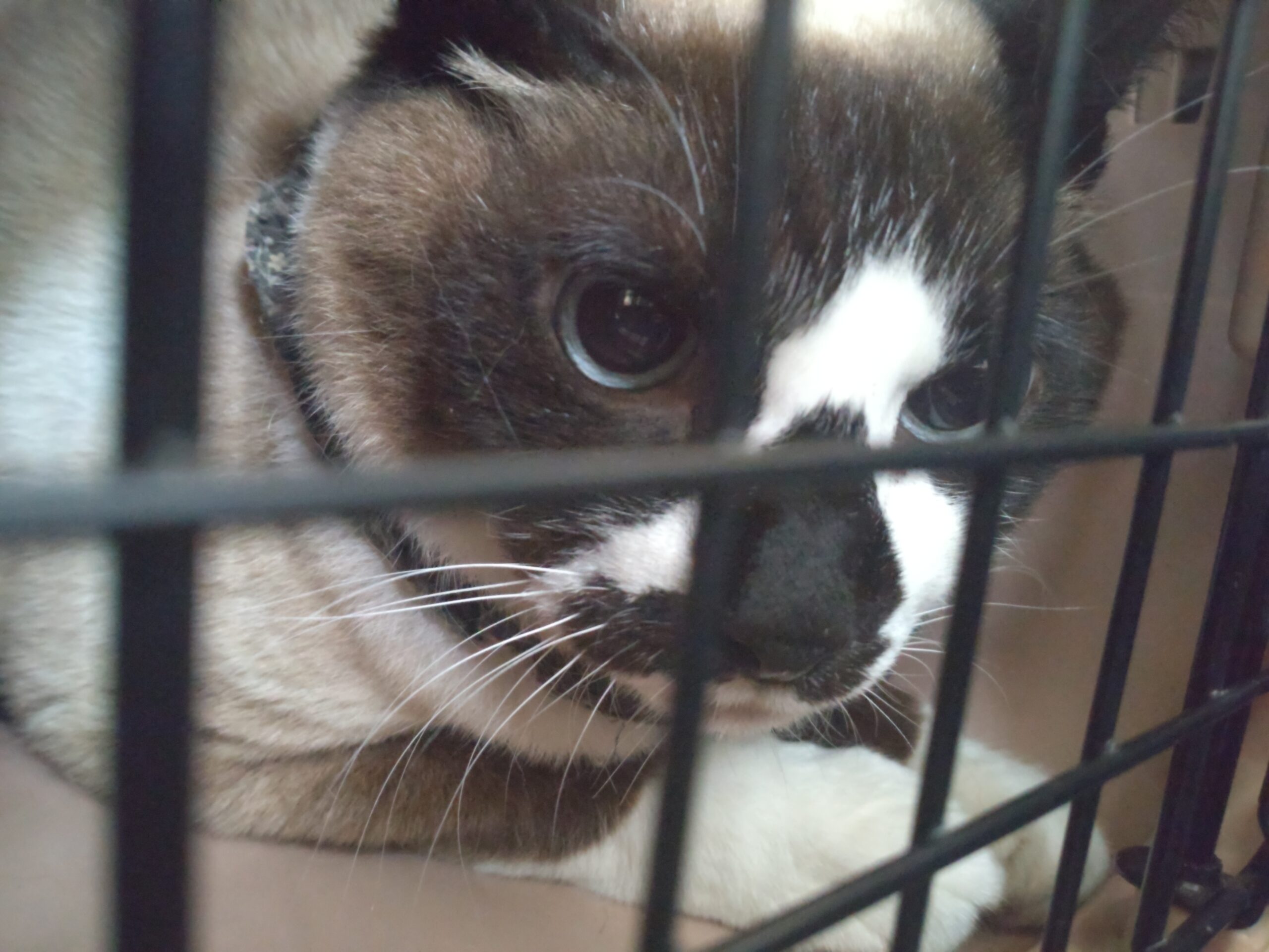 病院の待合室で色んなワンコやニャンコがいる中、じっとしてる。