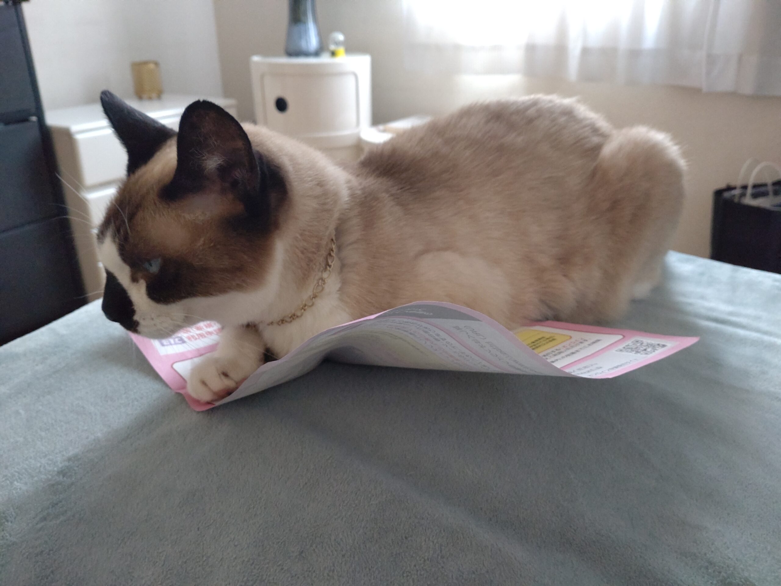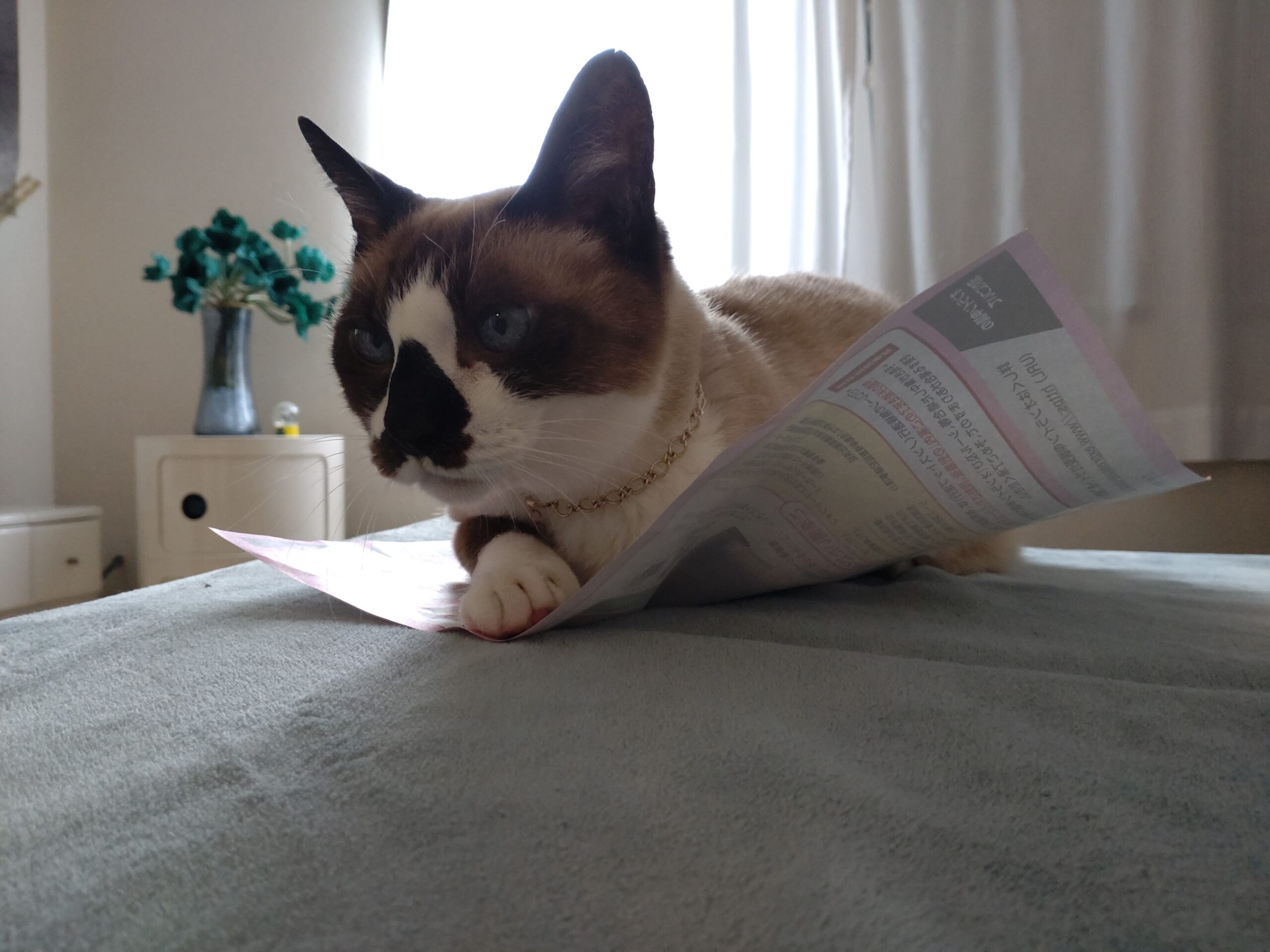 #見てる紙に乗る猫 #やる気みなぎる目 #猫のいる暮らし