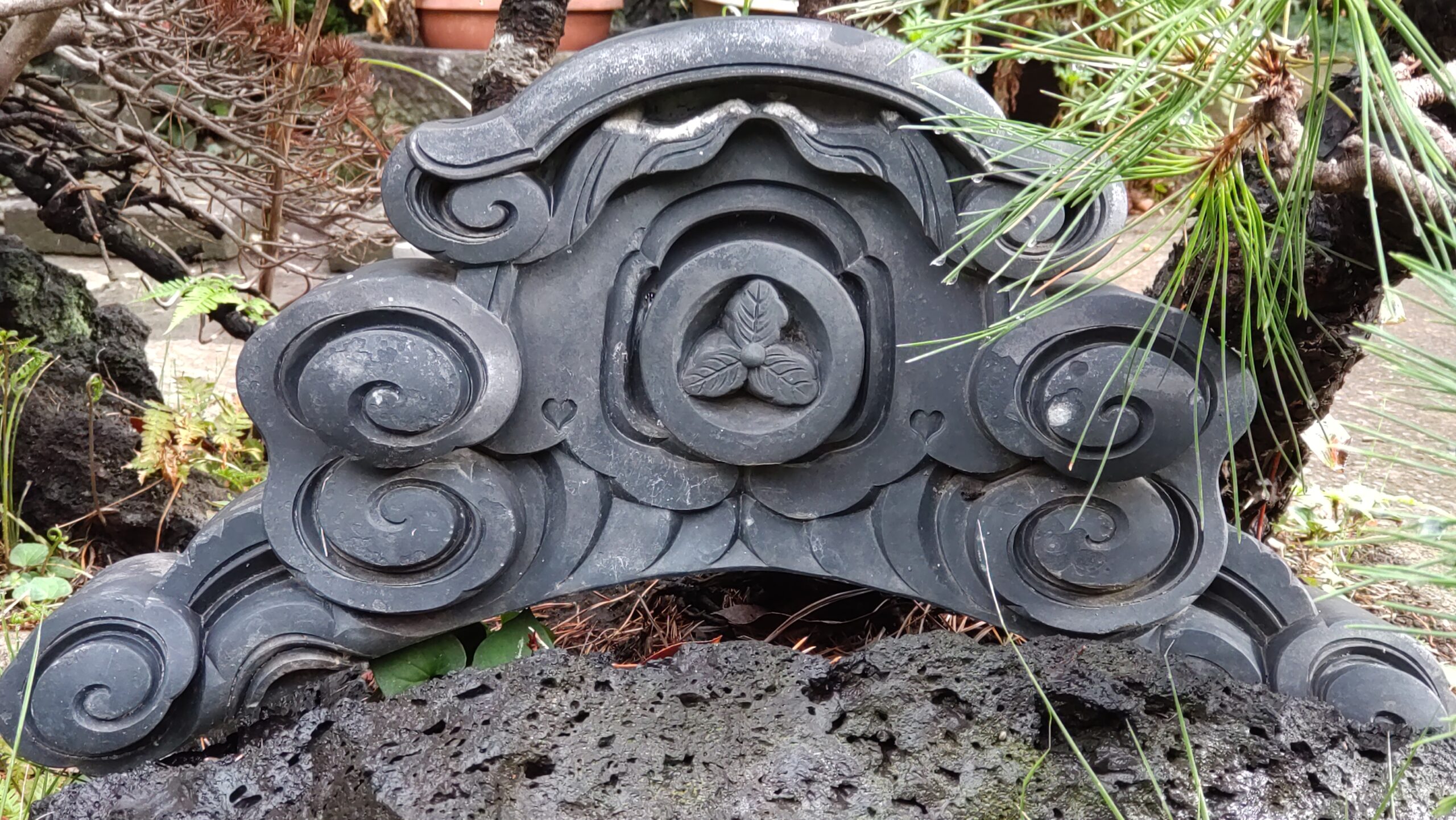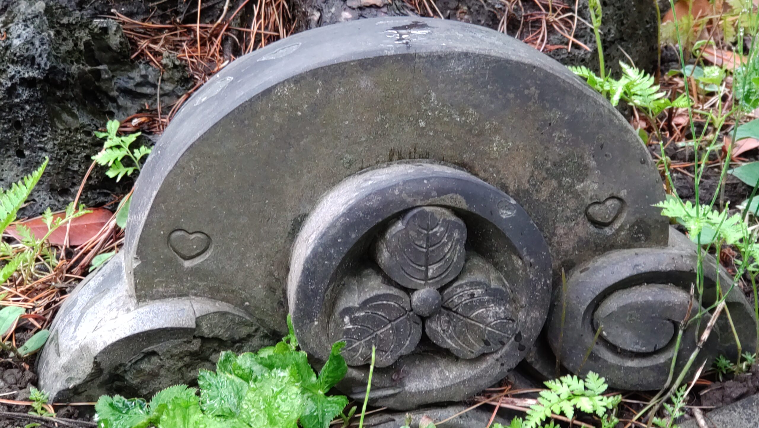 昔の家の瓦が庭にあるのは知っていたけれど、家紋の両横にハートマーク♡♡があるのは知らなかった