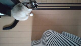 私の足が動いたら、鰹節が放出されるのを彼女は知っています。#鰹節 #シャムミックス #猫のいる暮らし #猫好きさんと繋がりたい