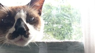 やっと酷暑から脱することができるのかな。日当たりのいい出窓に居ても心配せずにすみます。#天気と猫 #のんびり猫 #猫のいる暮らし #シャムミックス
