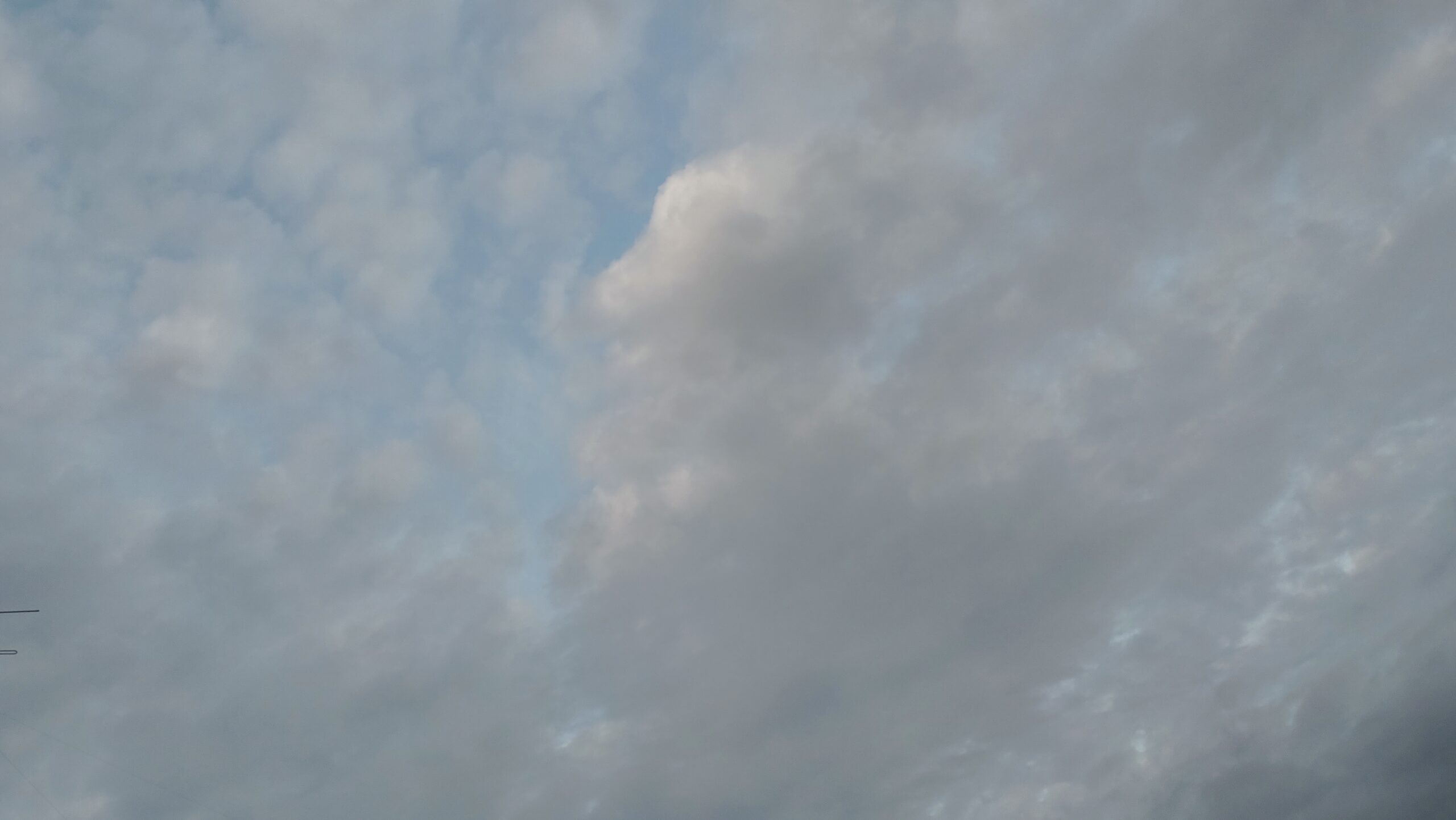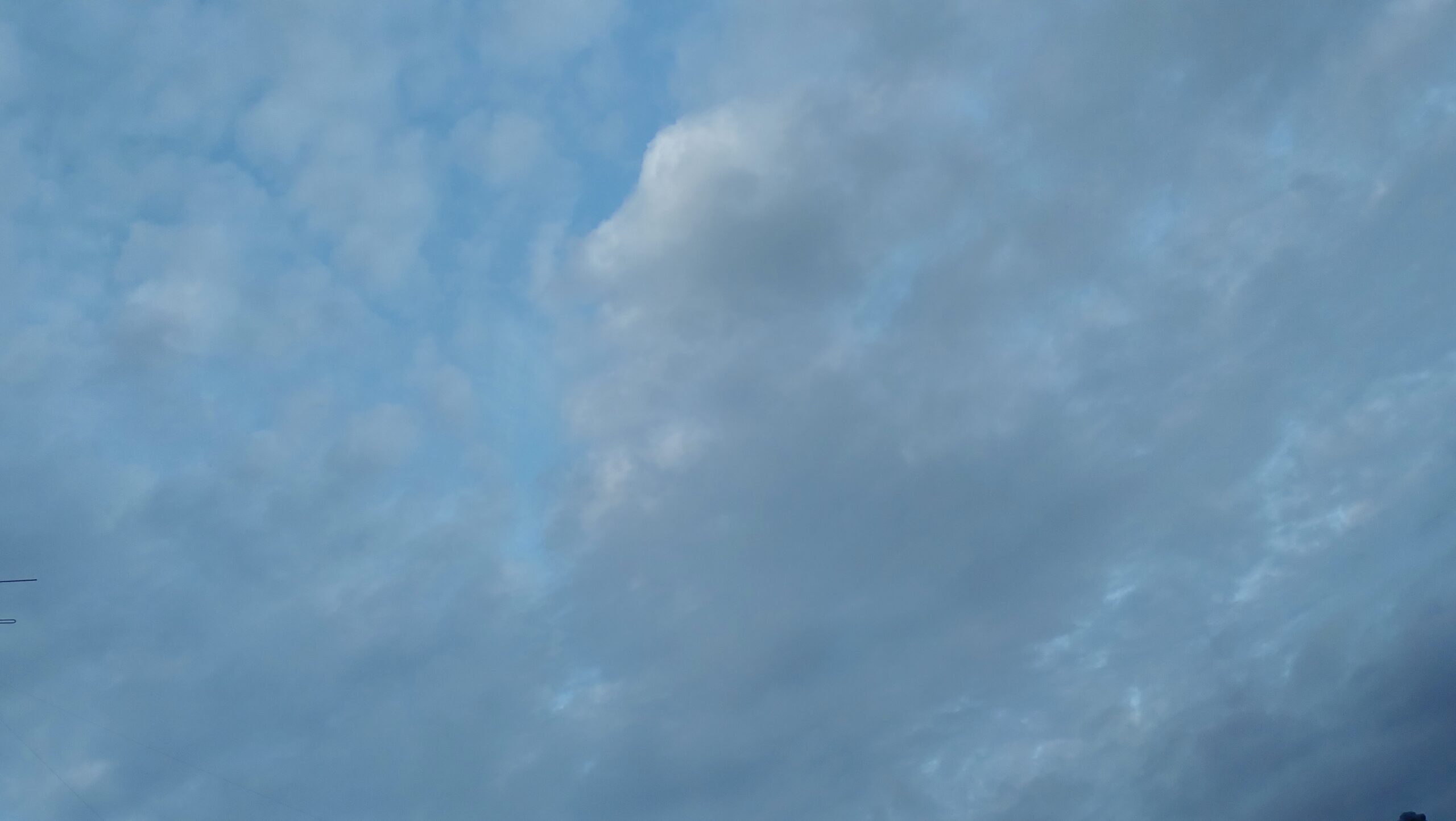 オレンジっぽい朝焼けを撮っていたら、その雲の形のまま真っ青な空に変化。